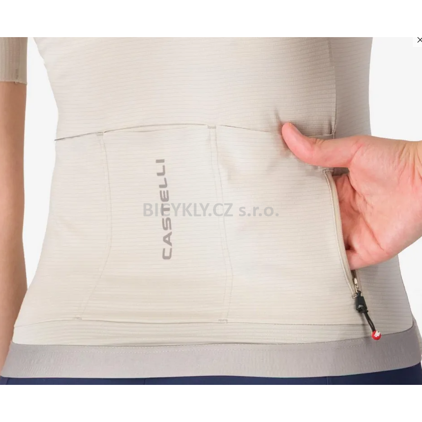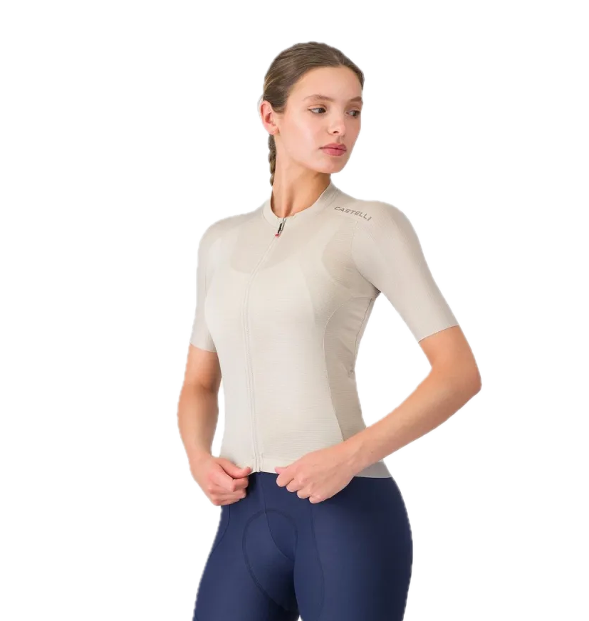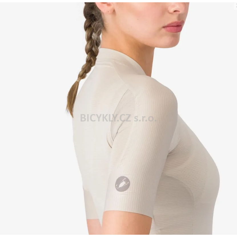 Tkanina Air_O Stretch: Vyvinuta exkluzivně pro Castelli. Nabízí výjimečnou pružnost a jemnost na dotek, přičemž zajišťuje optimální ventilaci a odvod vlhkosti.